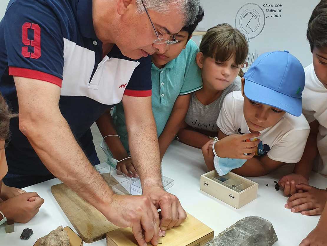 Álvaro Pinto, que dirige o Centro Ciência Viva do Lousal - Mina de Ciência, viajou até Vila do Conde para promover atividades experimentais e “Ciência Viva on the rocks ”, com rochas que cabem na palma da mão.